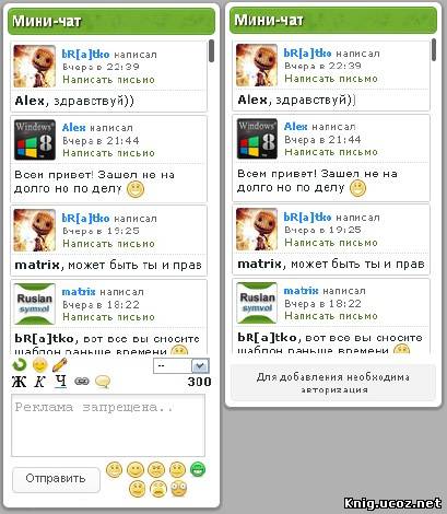 Полностью рабочий, многофункциональный, светлый и красивый мини-чат.